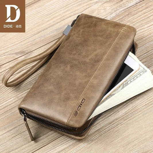 DIDE 100% Top Genuine Cowhide Leather Men Long Wallet Coin Purse Vintage Male Large Capacity Clutch Wallets Purse Card Holder