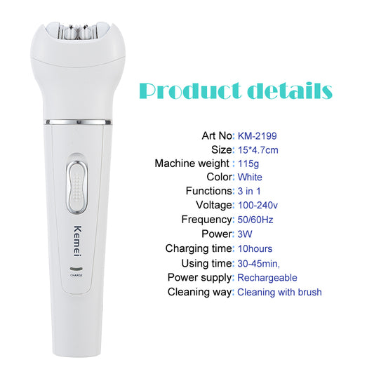 kemei km-1207 3 In1 Women Epilator Electric Female Face Hair Removal Lady Shaver Bikini Trimmer Body Depilatory Leg Rechargeable Depilation